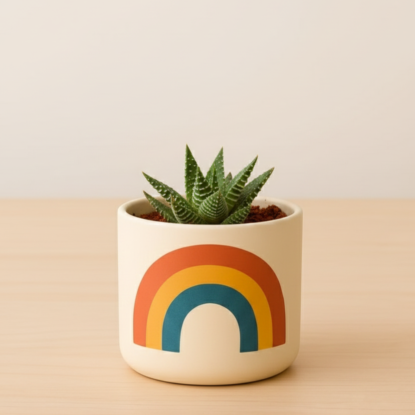 The smooth matte finish and bold graphic artwork make it an eye-catching piece—ideal for succulents, indoor plants, office desks, shelves, or gifting.